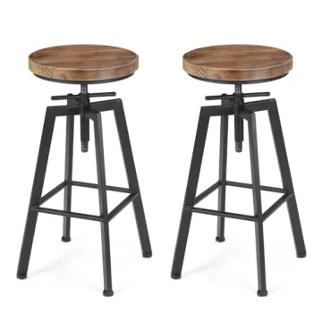 VILAVITA Vintage Adjustable Bar Stools - Rustic Industrial Swivel Seats