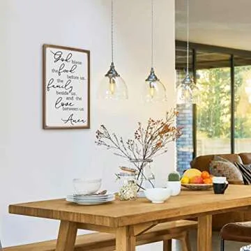 VILIGHT House Warming Gifts for New Home - Farmhouse Wall Decor for Dining Room and Kitchen - Rustic Wood Sign with Quotes Bless The Food Before Us - Vertical 16x9.5 Inches