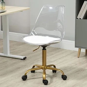 Show more Introducing the Villeston Acrylic Clear Desk Chair, where style meets functionality in an incredibly versatile design. Crafted with high-quality acrylic, this chair showcases a smooth surface that is not only beautiful but also super easy to clean – making it perfect for busy environments like art studios or homes with kids. Whether you need a comfortable seating option for your home office, a playful addition to a student desk, or an eye-catching chair for your entertainment area, this chair delivers! With a height adjustable feature ranging from 17.5" to 23.5", it caters to a variety of body types and seating preferences, ensuring you are always comfortable while working or studying.