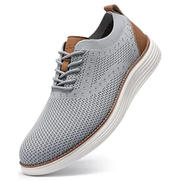 Show moreStep into unrivaled style and comfort with the VILOCY Men's Casual Dress Sneakers. These premium oxfords are expertly crafted for the modern man who appreciates a blend of function and fashion. The shoes feature a breathable stretchy knitted fabric upper, designed to provide a snug feel while allowing your feet to stretch and breathe effortlessly. Enhanced with chic leather accents on the heel and tongue, these sneakers not only elevate your outfit but are also built for long-term durability. Lightweight yet robust, the soft fabric lining guarantees a plush experience for your feet, making it easy to wear them all day long.
