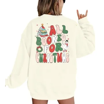 Show moreGet ready to celebrate the festive season in style with the VILOVE Christmas Sweatshirt: All Booked For Christmas Pullover. Designed especially for those who love to combine their passion for reading and holiday spirit, this sweatshirt features a playful, book-themed design that resonates with book lovers and educators alike. Crafted from a high-quality, soft cotton blend, this lightweight pullover is not only cozy but also breathable, making it perfect for everything from holiday gatherings to relaxed evenings at home. The cheerful and colorful graphics adorned with glittery lettering give it a festive flair, ensuring you'll shine bright wherever you go!