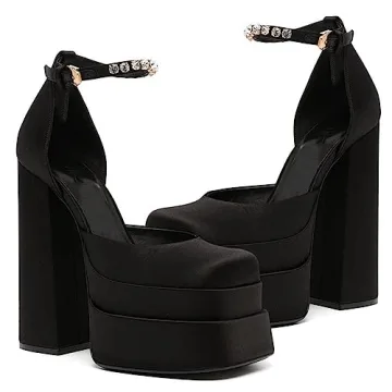 Show moreStep into style and unmatched comfort with the VIMISAOI Black Heels for Women. These stunning chunky heel pumps feature a chic square toe design and a secure ankle strap buckle, making them not only fashionable but also incredibly functional. Crafted from luxurious silk satin, they sparkle with rhinestones that are sure to catch the eye and elevate any outfit. Perfectly designed for those who want to make a statement without sacrificing comfort, these high platform wedges are an essential addition to your footwear collection.