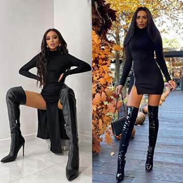 VIMISAOI Womens Thigh High Boots High Stiletto Heel Zipper PU Over the Knee High Lady's Boots