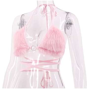 Show moreIntroducing the Vimoisa Women Sexy Lace-up Triangle Deep V Bikini Bra Top that is not just a piece of clothing but a statement of style and comfort. Made from a blend of 90% polyester and 10% spandex, this soft and comfortable bikini top is designed for the modern woman who wants to stand out while enjoying every moment. With its padded fur decor, this top adds a luxurious touch to any outfit, making it perfect for raves, music festivals, or a night out at the club.