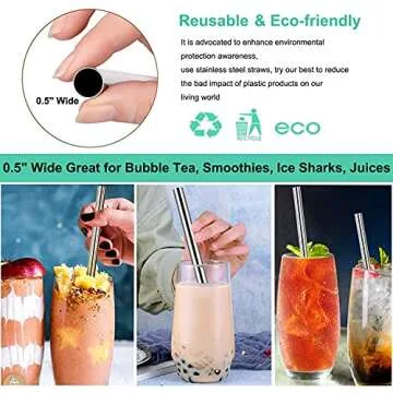 Vinaco Stainless Steel Smoothie Straws, 0.5'' Extra Wide Reusable Metal Drinking Straws for Milkshakes, Bubble Tea, Smoothie, Set of 6 Jumbo Drinks with 1 Cleaning Brush