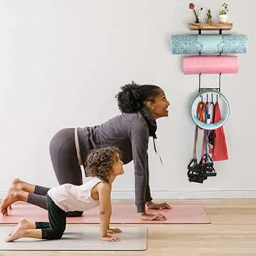 Transform your workout space with the VINAEMO Yoga Mat Holder—the perfect blend of function and style dedicated to helping you maximize your home gym organization. This innovative storage solution is designed to accommodate multiple yoga mats, foam rollers, yoga blocks, and more, providing an elegant way to keep your accessories off the floor and neatly stored. Its floating shelf design not only offers storage but also serves as a display space for your favorite workout...