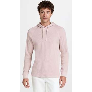 Vince Men's Mouline Thermal Hoodie, Himalayan/Off White, Small