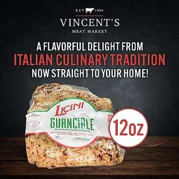 Show moreExperience the exquisite taste of tradition with Vincent's Meat Market Licini Guanciale - a premium 12 oz package of artisanal cured pork jowls. Derived from high-quality pork sourced directly from trusted farms in Italy, this gourmet delicacy is meticulously salted and spiced to enhance its natural flavors. Renowned for its rich, savory profile, Licini Guanciale is the ultimate ingredient your pasta carbonara has been longing for. Not just a food product, but a savory masterpiece that celebrates the heart of Italian cuisine, each bite transports you to the quaint kitchens of Rome.