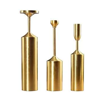 VINCIGANT Brass Gold Candlestick Holder for Pillar & Taper Candles,Set of 3 Vintage Decorative Candle Holders Centerpiece for Mantel Wedding, Dinning Room Mother's Day Housewarming Gift