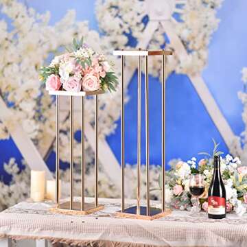 VINCIGANT Gold Flower Stand for Wedding,23.6 Inch Tall Metal Floor Pedestal Stand Centerpieces Geometric Vases with Plates for Party Events Reception(Pack of 2
