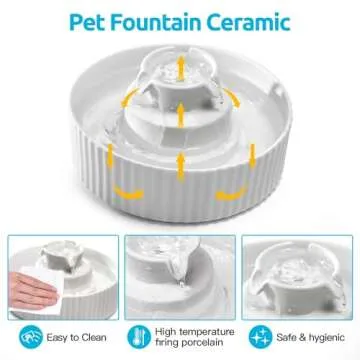 Show moreIntroduce your beloved pet to the luxury of hydration with the VinDox 360 Ceramic Cat Fountain. Crafted from high-quality ceramic, this fountain not only serves a practical purpose but also enhances your home décor with its elegant design. Holding a generous capacity of 70 oz, it ensures that your cats or even small dogs have access to fresh water throughout the day without frequently refilling. The unique triple free-falling design of water streams adds oxygen to freshen the water while enticing your pets to drink more, essential for their health and well-being.