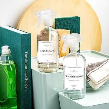 Vine Creations Glass Spray Bottles, 2 Pack Glass Spray Bottles for Cleaning Solutions, Clear Glass Spray Bottle for plants, Water Spray Bottle Sprayer, Glass Spray bottles 16 oz with Waterproof Labels