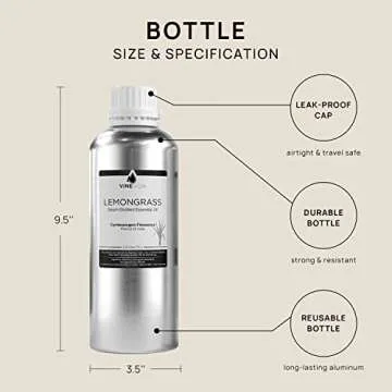 VINEVIDA Lemongrass Essential Oil 32 oz - Undiluted Lemongrass Oil 32 oz - Lemongrass Candle Oil Scent - DIY Candle Scents for Candlemaking - Bulk Essential Oil for Soap Making Safe for Skin