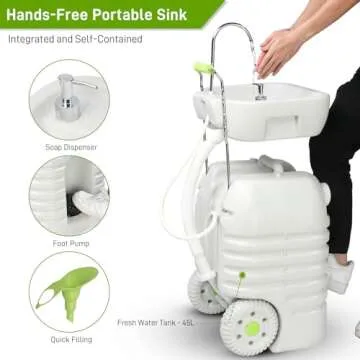 VINGLI 45L Upgraded Portable Sink| Rolling Hand Wash Basin Stand with Towel Holder & Soap Dispenser & Wheels, Perfect for Garden/Camping/Outdoor Events/Gatherings/Worksite/RV/Indoor