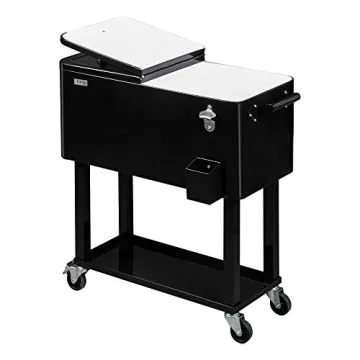 Show more Introducing the **VINGLI 80 Quart Rolling Ice Chest**, the ultimate solution for keeping your beverages chilled and accessible at any outdoor or indoor event! This portable patio party bar is designed with functionality and elegance in mind, featuring a sleek black finish that complements any setting. With its impressive **80-quart capacity**, it can hold up to **96 aluminum cans** or a generous supply of your favorite drinks, making it perfect for gatherings, barbecues, or just a sunny day on the patio.