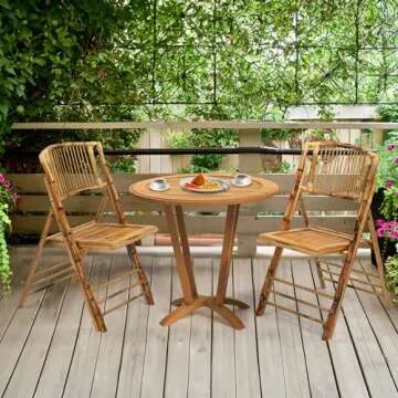 VINGLI Bamboo Folding Chair, Foldable Dining Wood Chairs Comfortable Seat for Outdoor & Indoor, Patio, Porch, Wedding, Party, Event, 4 Pack