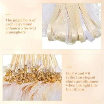 Vinsot 100 Pieces Lace Ribbon Wedding Wand Sticks Party Streamers with Bells Lace Silk Fairy Stick Wand Streamers for Wedding Send off Party Activities Holiday Celebration Favors(Champagne)(Champagne)