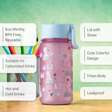 VINSUN Water Bottle Kids 18oz with Straw - Spill-Proof, Tritan, BPA free - Pink Drinking Bottle for Kindergarten, School, Preschool, Sports - Girls
