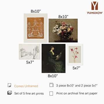 Vintage Botanical Wall Decor - Flower Portrait Neutral Wall Art for Boho French Country Farmhouse Kitchen, Bathroom, Bedroom Poster Print Picture, Preppy Room Decor Aesthetic Sketch Set of 5 Unframed