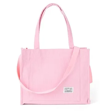 Vintage Casual Corduroy Tote Bag for Women - Stylish Crossbody Purse in Pink
