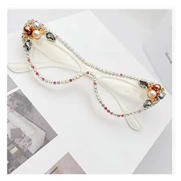 Vintage Cat Eye Crystal Bling Reading Glasses Women Rhinestone Eyewear Frames Anti Blue Light Trendy Reader (white, 1.5, multiplier_x)