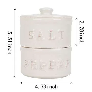 Vintage Ceramic Salt and Pepper Shaker Set Condiments Cellar Stacking Bowls With Lid