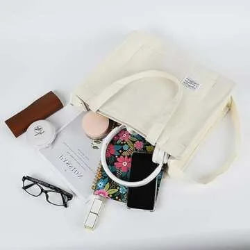 Vintage Corduroy Tote Crossbody Shoulder Bag - Beige