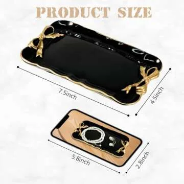 Vintage Decorative Tray Jewelry Tray Towel Tray Storage Tray Rings Necklace Bracelets Earrings Trays Cosmetics Jewelry Organizer Retro Design Bow Decor Resin Plate Coquette Room Decor (Black)