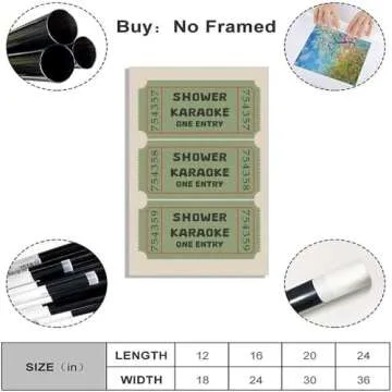 Vintage Green Wall Art Bathroom Shower Karaoke Ticket Canvas Print Trendy Preppy Girly Room Decor Retro Funny College Bathroom Toilet Shower Singing Poster Aesthetic Decoration 8x12inch Unframed