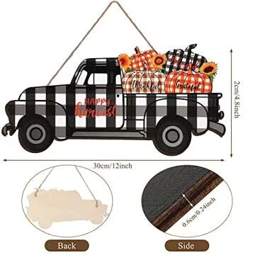 Show moreTransform your home into a cozy autumn haven with the Vintage Happy Harvest Truck Sign. Designed with a charming truck carrying a plaid pumpkin, this exquisite hanging board sign features bright, meaningful words that celebrate the spirit of the harvest season. Measuring 12 x 6 inches and crafted from high-quality wood, this sign is not only visually appealing but also built to last, showcasing fine workmanship and vibrant printing that won't fade over time.