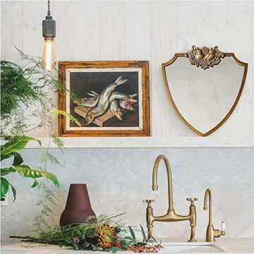Vintage Home Decor Mirror, Baroque Iron Wall Mirror, Shield Vanity Mirror for Bedroom, Living Room, Hallway, Entrance, 23''X24'', Copper
