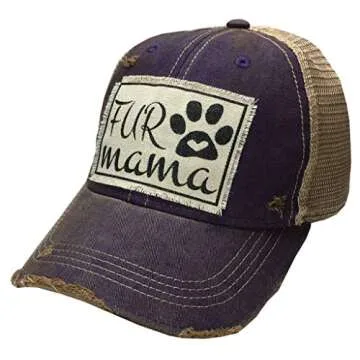 VINTAGE LIFE Baseball Cap for Women Funny Trucker Hat Cute Distressed Ball Caps (Fur Mama, Purple)