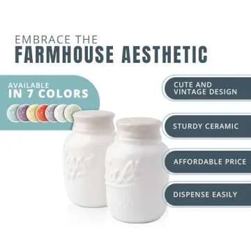 Vintage Mason Jar Salt & Pepper Shakers by Comfify - Adorable Decorative Mason Jar Décor for Vintage, Rustic, Shabby Chic Kitchens - Sturdy Ceramic in White - 3.5 oz. Cap.