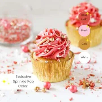 Show moreElevate your desserts with the **Vintage Rose Gold Sprinkle Mix** from **Sprinkle Pop**, a perfect fusion of elegance and sweetness. This stunning blend boasts an enchanting mix of rose gold, blush, and white sprinkles adorned with exquisite gold dragees, creating a romantic flair that's ideal for any special occasion. Whether you are crafting a wedding cake, celebrating a bridal shower, or treating your loved one on Valentine’s Day, these sprinkles effortlessly add vintage charm to your culinary creations. With their clean, sweet vanilla finish and satisfying crunch, each sprinkle not only enhances the visual appeal of your desserts but also elevates their taste, making it a delightful experience for everyone. Plus, our premium ingredients ensure that your treats will look and taste truly exceptional.