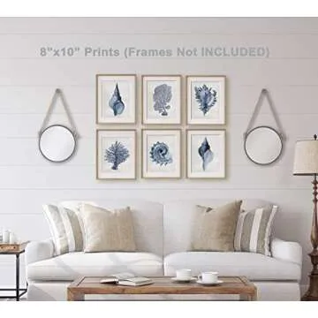 Vintage Shell Prints, Beach House Art, Coastal Art, Prints and Canvas, Coral Print, Illustration, Navy, Indigo, UNFRAMED