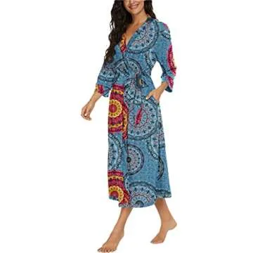 Show more Introducing the **VINTATRE Women Kimono Robes Long Knit Bathrobe**, your new go-to piece for effortless style and cozy relaxation. Crafted with a blend of **95% Rayon and 5% Spandex**, this robe offers a **super soft** feel against your skin while being **lightweight** enough for daily wear. The **elegant design** features 3/4 sleeves and a chic mid-calf length, making it perfect for lounging at home or wrapping yourself up after a long bath. With an adjustable sash tie closure, it fits snugly yet comfortably, allowing for easy wear and removal. It's time to indulge in luxury and comfort every day!
