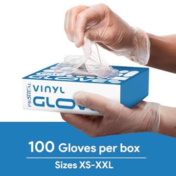 Show moreExperience unparalleled versatility with ProHeal's Vinyl Disposable Gloves, the ultimate choice for those seeking dependable protection without compromising on comfort. Crafted from high-quality PVC plastic, these non-latex gloves are designed to ensure safety, ease, and performance in any setting. Whether you're preparing meals in the kitchen or tackling cleaning tasks around the house, these gloves provide the perfect barrier without the worry of allergies associated with natural rubber latex. Each box contains 100 gloves in various sizes ranging from XS to XXL, catering to everyone’s needs.