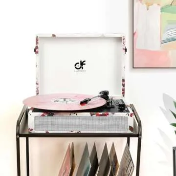 Vinyl Record Player Bluetooth with Built-in Speakers, Vintage Portable Turntable 3 Speed with USB Recording Headphone/RCA/AUX Jack Floral Record Player White