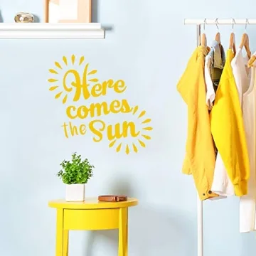 Show moreIntroducing the Vinyl Wall Art Decal - Here Comes The Sun, an inspiring touch for any modern space! Measuring 22" x 23", this beautifully designed decal features an uplifting song quote in trendy cursive, adorned in a vibrant shade of yellow. Perfect for brightening your home office, bedroom, or living room, this motivational piece adds a cheerful vibe and transforms walls into a canvas of positivity. Crafted from high-quality vinyl, this decor is not only eye-catching but also easy to apply and remove, allowing you to refresh your space without any damage.