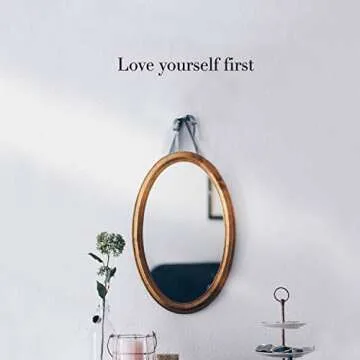 Show moreAdd a touch of positivity to your space with our Vinyl Wall Art Decal - Love Yourself First. Measuring just 2 inches by 15 inches, this motivational sticker fits perfectly in any nook of your home or office, transforming walls into inspiring focal points. Made of high-quality, durable vinyl, it features a sleek black finish that complements any decor style. Whether you place it in a bedroom, living room, closet, kid’s room, playroom, or even the gym, this decal serves as a daily reminder to prioritize self-love and confidence.