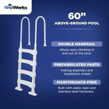 Vinyl Works Heavy Duty Anti Slip Plastic Step Ladder for Above Ground or In Ground Swimming Pools with Ergonomic Aluminum Handrails, White