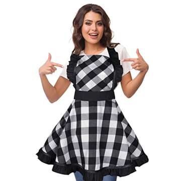 Measuring at a length of 28.5 inches and width of 20.1 inches, this one-size-fits-most apron is tailored to flatter slim and medium-height women, ensuring you feel confident while you cook. With its unique adjustable ties at the waist and neck, it offers a customizable fit that caters to various body shapes, enhancing your comfort as you whip up culinary delights. The chic black plaid pattern not only adds a touch of elegance but sets you apart during festive occasions like Christmas, Halloween, or even casual family gatherings.