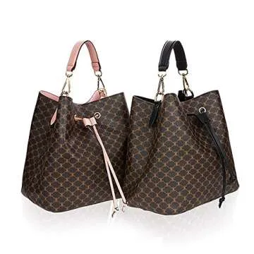 Introducing the stunning Violett-Handbags Drawstring Bucket Bag with Pouch in a beautiful pink shade, a perfect blend of style and functionality for the modern individual. Crafted from soft synthetic materials with chic leather accents, this bag not only boasts a fashionable appeal thanks to its patented butterfly design pattern, but it is also designed for practicality. Measuring 9.8 x 9.8 x 6.7 inches, it's the ideal size for a day out or running errands. The 18k gold plated hardware adds...