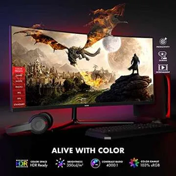 Show more Introducing the ultimate gaming and productivity solution—the Viotek UW-QHD Curved Monitor. Elevate your visual experience with its HDR-ready upgraded VA panel boasting an ultra-wide 3440x1440p resolution and 178° viewing angles. This monitor not only renders deep blacks and brilliant whites but also delivers vivid RGB colors thanks to a stunning 4000:1 contrast ratio. With enhanced color control features, you can fine-tune your display’s gamma, hue, and saturation levels, or choose from one of the seven display presets available. Whether you're gaming or creating content, this monitor is designed to meet your needs.