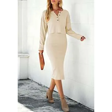 Button v neck sweater cropped top, long batwing sleeve 2 piece sweater dress