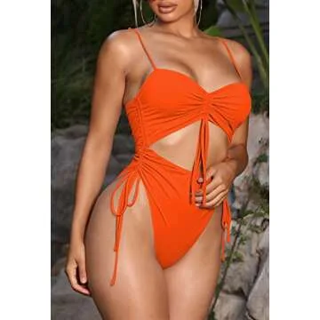 Introducing the Viottiset Women's Cut Out Drawstring One Piece Swimsuit, a sexy and versatile addition to your swimwear collection. Designed with a stylish high cut leg and a cheeky back, this breathtaking swimsuit features a flowing cut-out detail at the front that creates an alluring silhouette. The drawstring ties on the sides not only add a trendy element but also allow for adjustable comfort across your hips, helping you achieve the perfect fit whether you're at the beach, pool, or on...