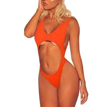 Show more Step into summer with the ultimate statement piece - our stunning plunge neck, backless bikini that is designed to turn heads. This gorgeous bathing suit combines elegance with a touch of daring, featuring a stomach hollow out design that highlights your curves and adds a unique flair. Crafted with removable soft pads and a slingshot thong style, this bikini beautifully elongates your legs while providing just the right amount of coverage for confidence by the pool or beach.