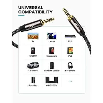 VIOY Aux Cable (10 ft), [Copper Shell, Hi-Fi Sound] 3.5 mm Male to Male Braided Auxiliary Cord Compatible with Headphone, Smartphone, Home/Car Stereo, Speaker, Echo & More