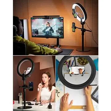 viozon Overhead Live Stand with 12" LED Ring Light, Outer 24W 6500K, Two Cellphone Holders Compatible with 3.5-6.7" Cellphones, Adjustable Height&Angle, Aluminum Alloy, for Live Stream/YouTube/TikTok