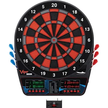Show moreIntroducing the Viper Orion Electronic Soft Tip Dartboard, the ultimate entertainment experience for game lovers! This extraordinary dartboard is designed for serious players and newcomers alike, featuring a regulation-sized 15.5-inch target area. Constructed from top-quality materials, it ensures unmatched durability and longevity. Whether you’re aiming for your first bullseye or perfecting your technique, this board's precision-engineered concave segment holes lock your shots in place, allowing you to enjoy the fun without the frustration of retrieving missed darts.
